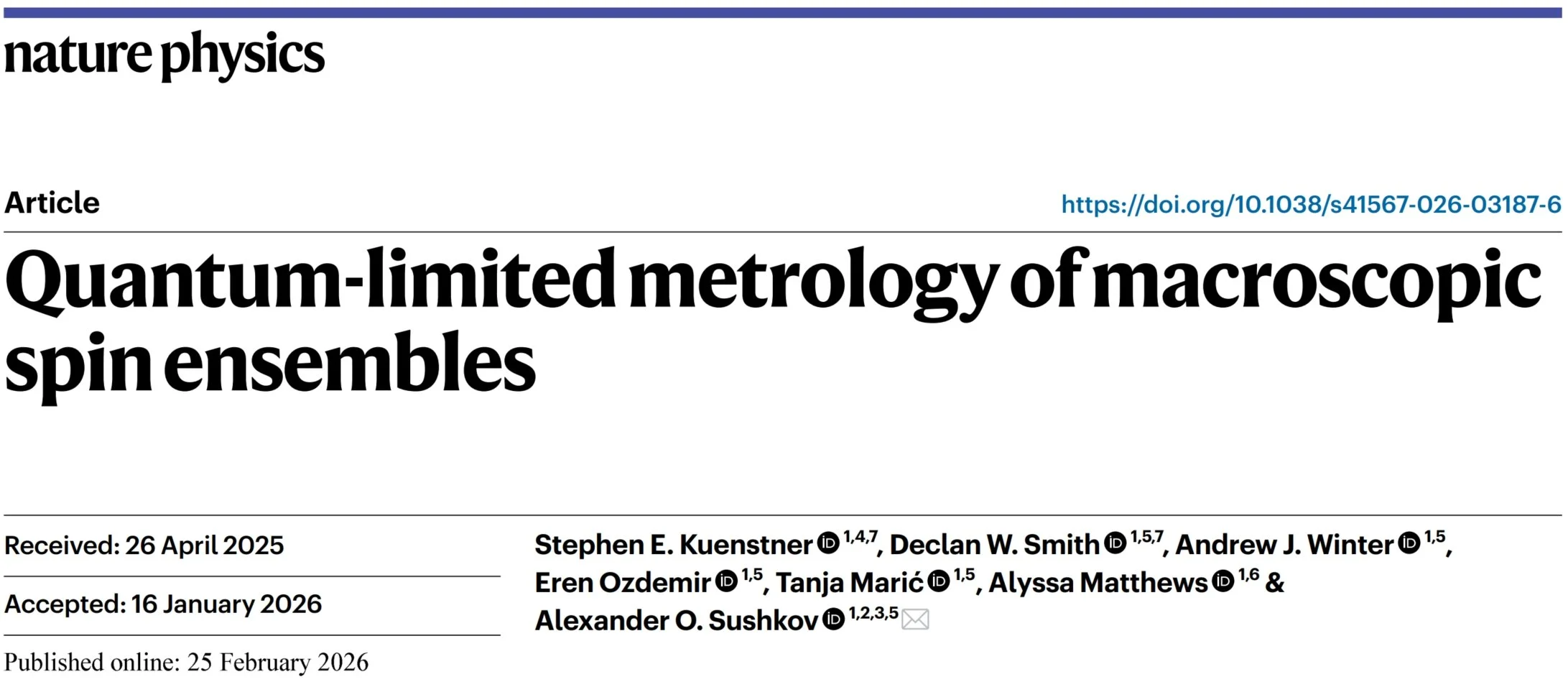 Our paper on quantum-limited magnetic resonance detection in macroscopic spin ensembles is published in Nature Physics: https://www.nature.com/articles/s41567-026-03187-6
